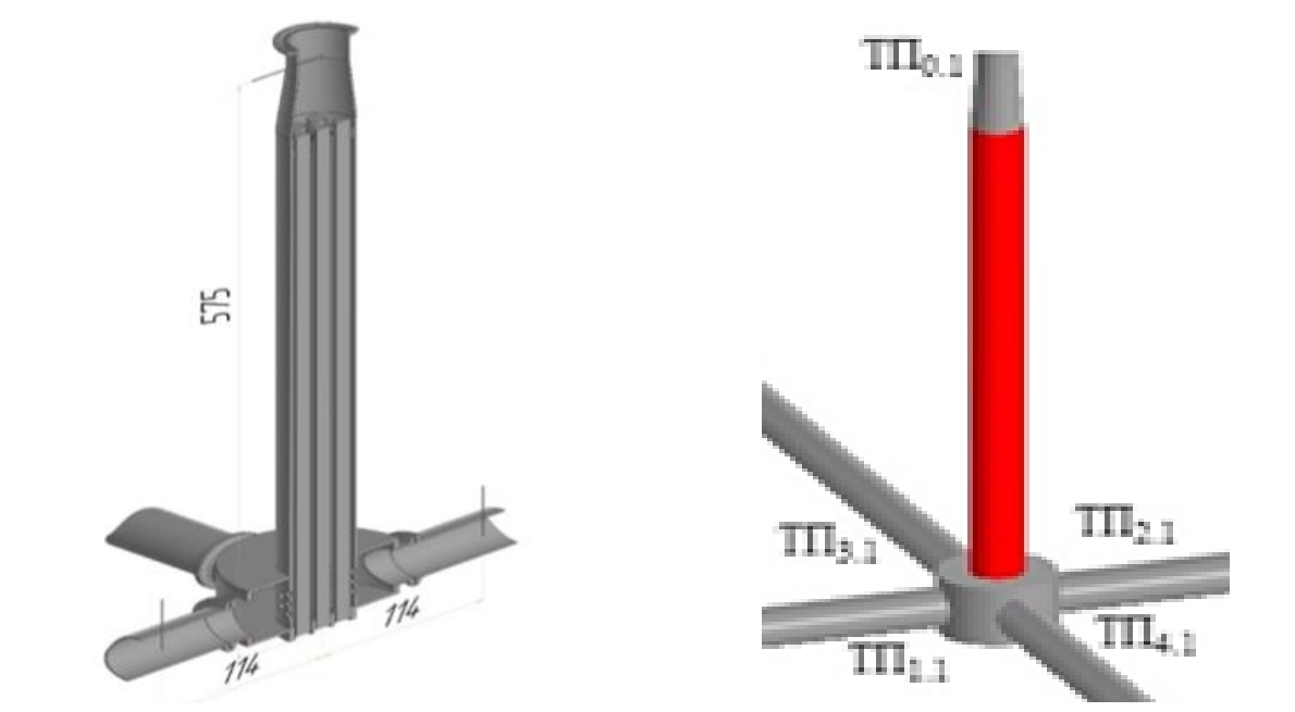 Выполнено тестирование работы гидродинамического контура, имеющего четыре циркуляционные петли, соединенных в верхней камере – баке с теплоносителем: источник тепловыделения в виде имитатора ТВС и четыре теплообменника, отводящие тепло в режиме ЕЦ. Конструкция контура позволяла проводить тестирования при разном количестве подключений циркуляционных петель и нарушении теплосъема в одной из них.