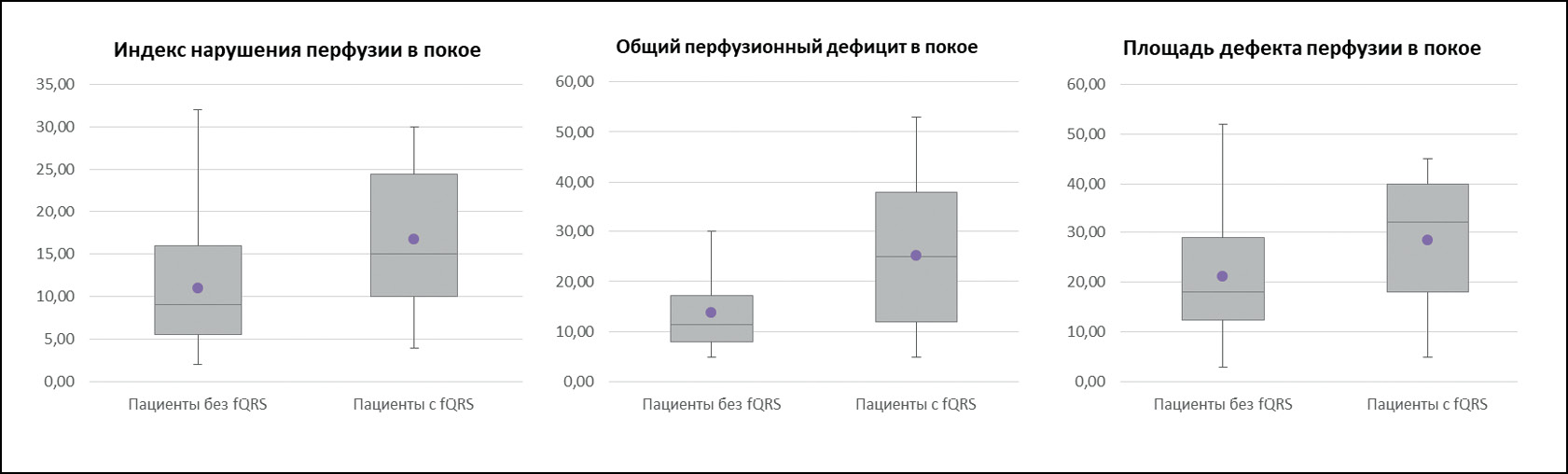 Previously, international studies have noted that fQRS is also more common in patients with hemodynamically significant stenoses of the coronary arteries than in healthy individuals [42, 43]. We also recorded a higher incidence of fQRS in patients with reversible myocardial perfusion defects than in those without perfusion defects. However, fQRS was generally determined less frequently in our study than in the works of Korkmaz et al. and Caliskan et al. (13.3%, 54.8%, and 70%, respectively). These differences occur because these studies did not separately evaluate patients with partially reversible perfusion defects.