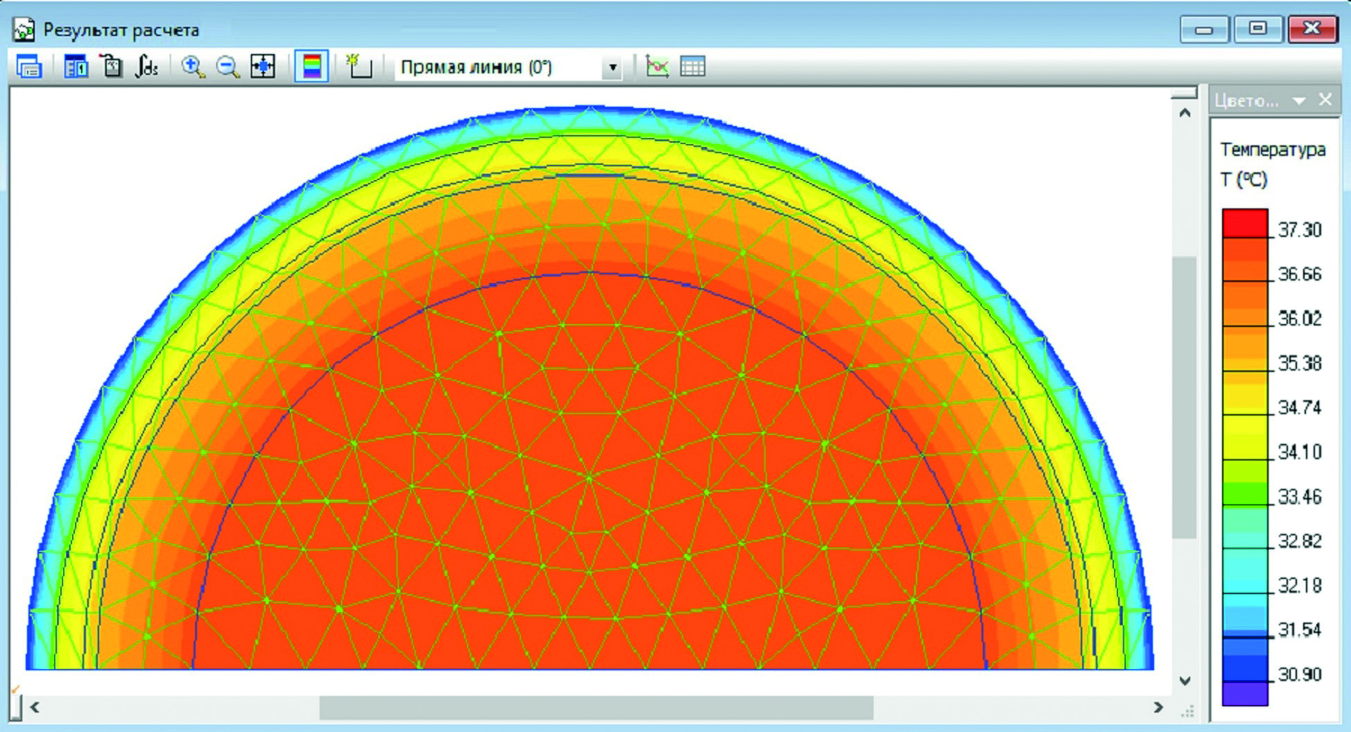 Важным преимуществом двумерной КЭМ перед ее трехмерными аналогами является сохранение высокой точности расчетов при простоте геометрии и небольшой сегментации расчетной области. При однородных условиях охлаждения поверхности головы двумерная геометрическая модель в силу осевой симметрии вообще может быть представлена одним квадрантом. Это позволяет реализовать двумерную КЭМ с помощью распространяемых бесплатных приложений, в том числе и с понятным русскоязычным интерфейсом, например, ELCUT Student, не предъявляющих высоких системных требований к компьютеру и не требующих наличия у оператора специальной математической и инженерной подготовки.