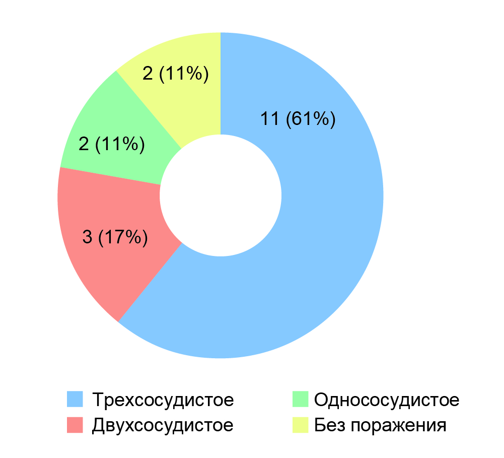 Рисунок 2. Распространенность поражения коронарного русла у пациентов с ИМпST старше 90 лет.