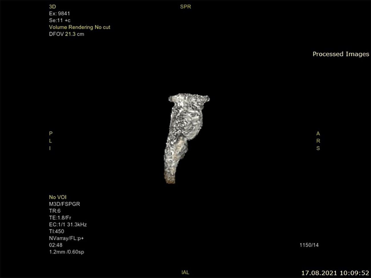 Объем ствола мозга определяли в режиме реконструкции 3D (рисунок 1).