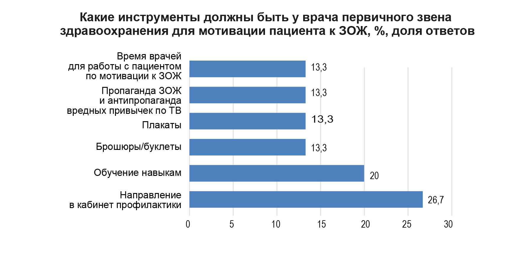 Рисунок 4. Ответы респондентов на вопрос «Какие инструменты должны быть у врача первичного звена здравоохранения для мотивации пациента к ЗОЖ?»