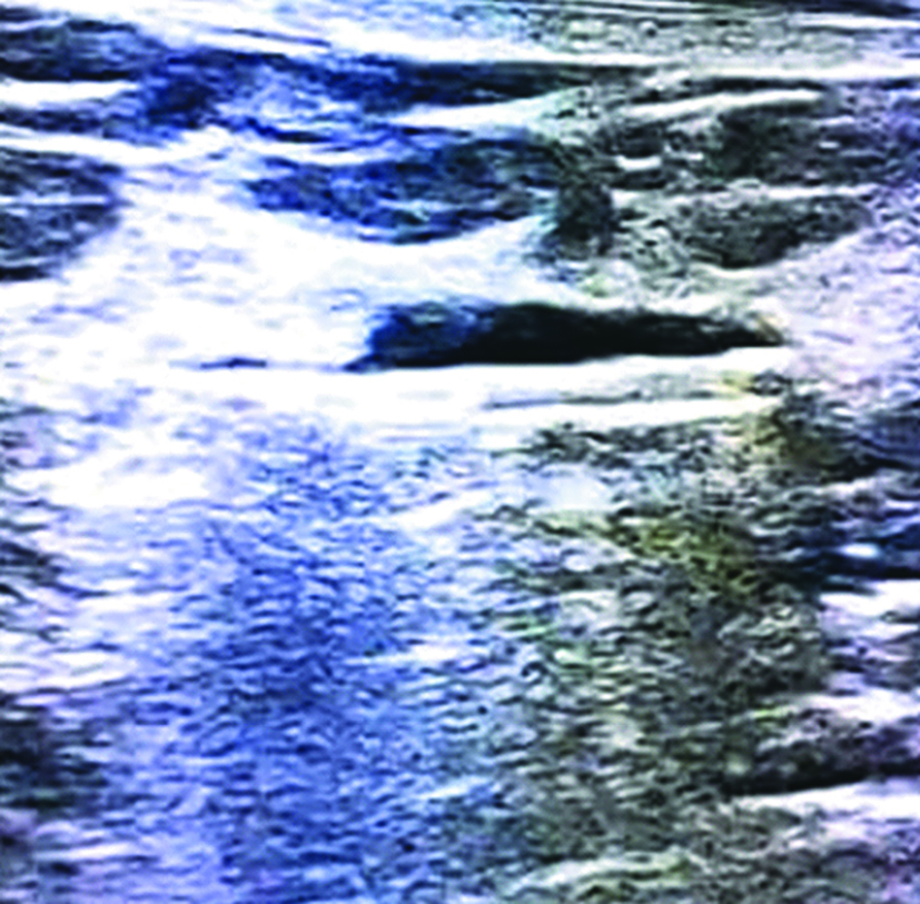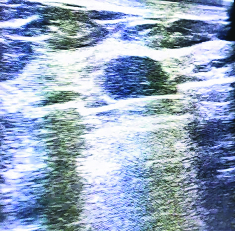 Рисунок 2. Ультразвуковой контроль: выполнен срез с последующей аспирацией ткани опухоли. Данная процедура повторяется многократно до полного иссечения препарата