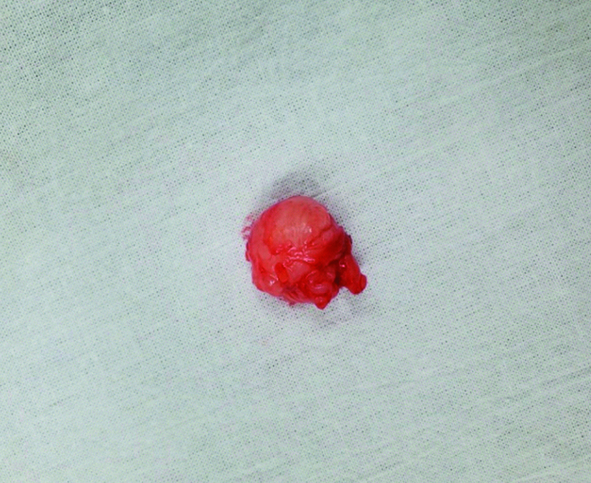 Figure 6. Excision of a nodular neoplasm captured by a surgical cap using monopolar coagulation