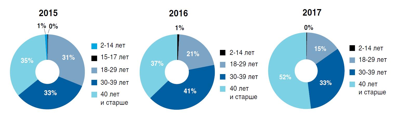 Рисунок 2. Возрастная структура больных с вновь установленным диагнозом в 2015–2017 гг.