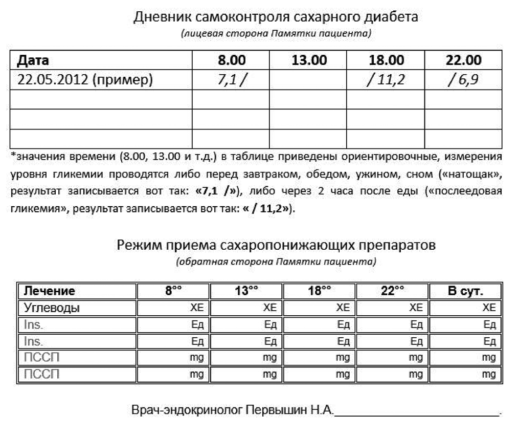 После каждого амбулаторного приема пациент получает памятку формата А6 с рекомендациями по кратности и режиму проведения самоконтроля, формой дневника самоконтроля и коррекции медикаментозного лечения (рисунок 3).
