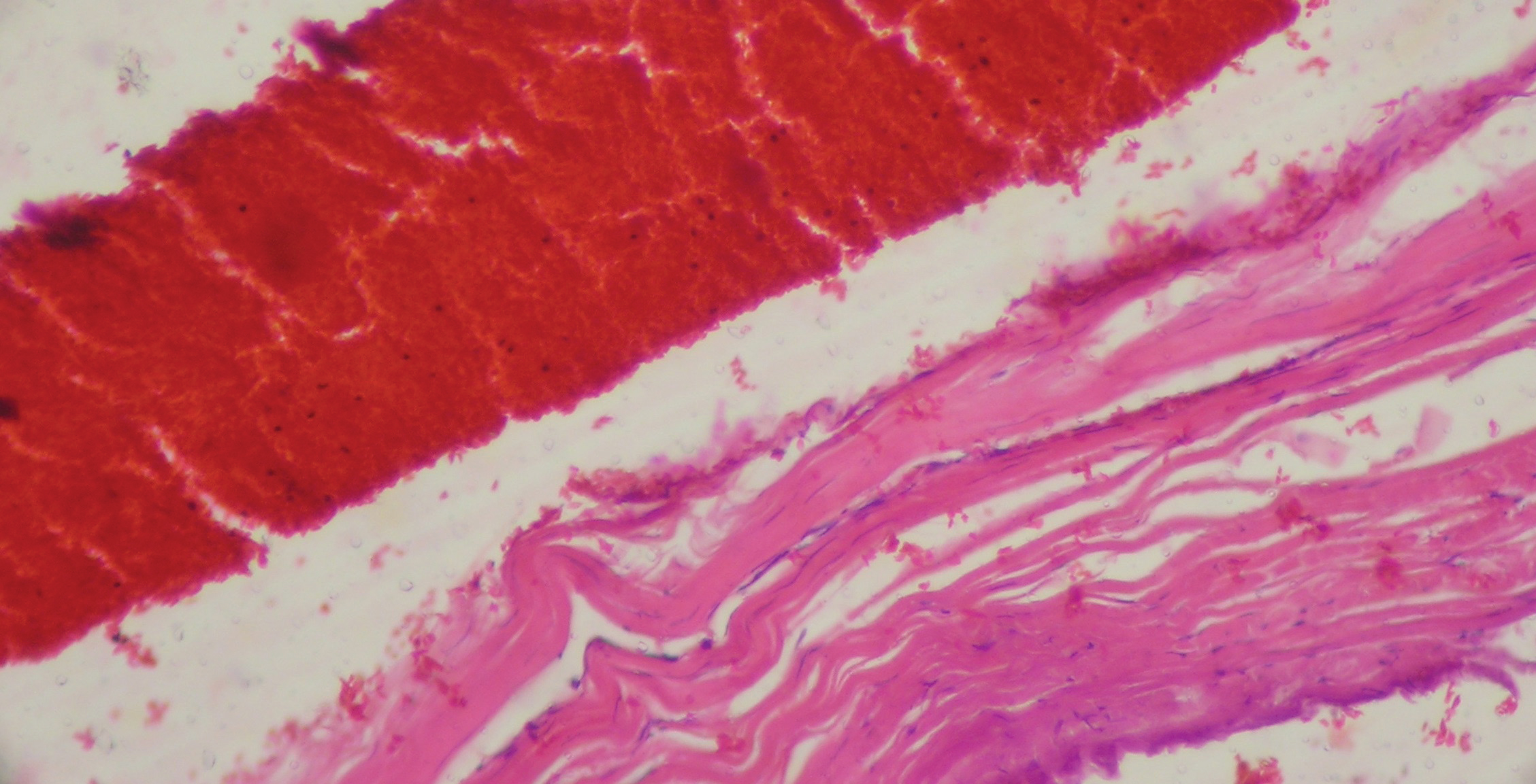 Забранный набор объектов фиксировали в нейтральном растворе формалина и заливали в парафин. Изготовленные срезы окрашивали гематоксилином и эозином – по Ван Гизону и по Лепене. Гистологическое исследование проводили с помощью микроскопа MICROS серии MC 300 TX.