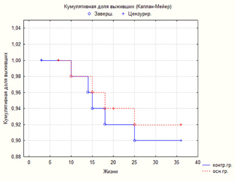 Рисунок 4. Общая выживаемость в группах сравнения по Каплану – Мейеру.