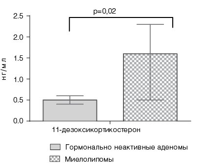 Рисунок 1. Уровень 11-дезоксикортикостерона в сыворотке крови у больных с миелолипомой по данным ВЭЖХ.