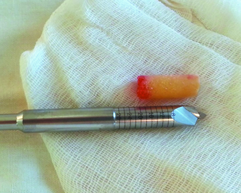 Применение аутотрансплантатов, представляющих собой здоровую губчатую кость, позволяет не только обеспечить анатомическое замещение дефекта субхондральной кости, но и создать оптимальные условия для восстановления ее метаболизма и структурной перестройки (рисунок 2).