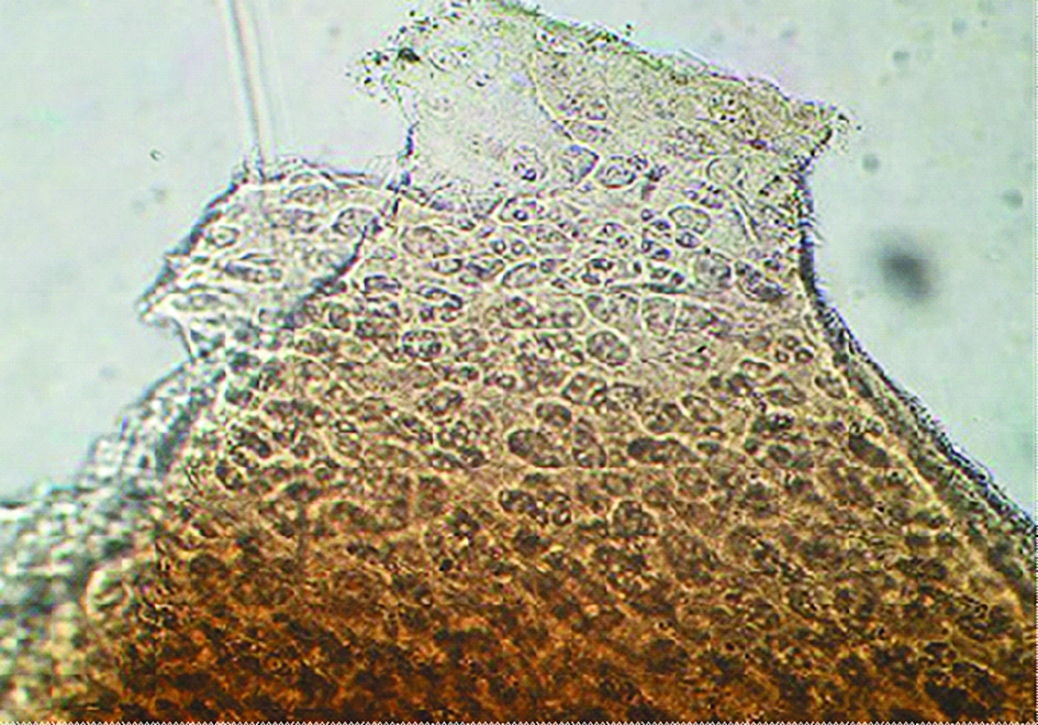 Рисунок 3. Электронная микрофотография хондроцитов гиалинового суставного хряща, формирующих пласт в культуре, на 16 сутки культивирования (нативный препарат, увеличение 100).