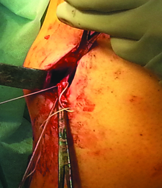 Figure 6. Stage of the operation – mobilization of the gracilis muscle.