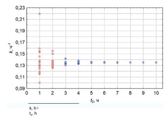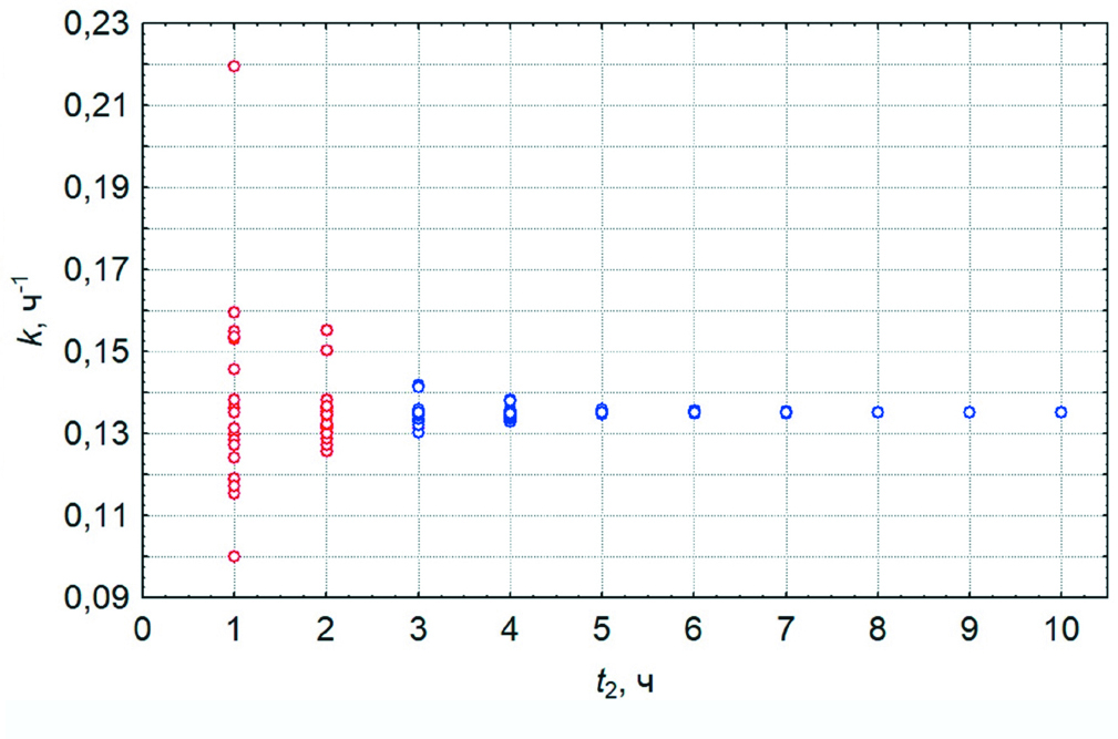 k, ч-1 | 0,135 | 0,007 | 0,002333 | 142,9162 | 0,111203002 |