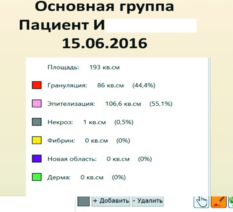 Рисунок 4. Параметры раны больного И. (основная группа) на пятые сутки.
