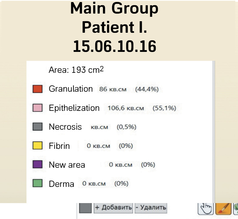 Figure 4. Wound parameters of patient I. (main group) on the 5th day.