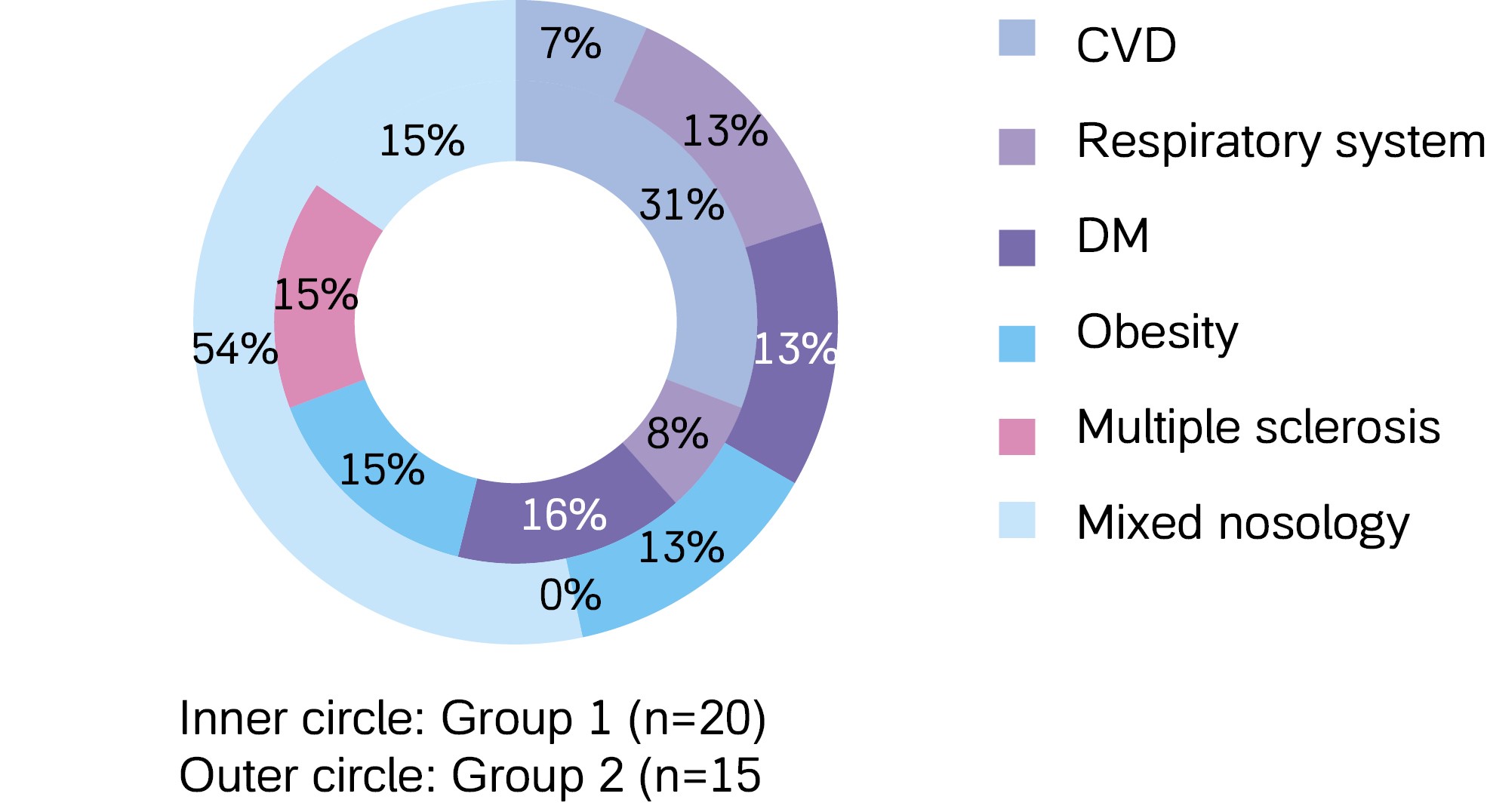 Mixed nosology | 10 (28,5%) | 2 (10%) | 8 (53%) | |