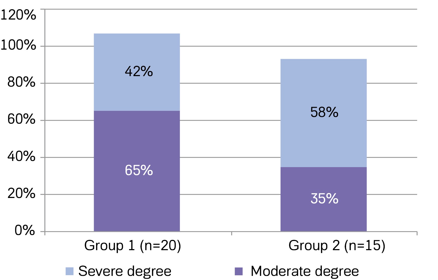 Severe degree of COVID-19 | 12 (34,3%) | 5 (25%) | 7 (46,7%) | |