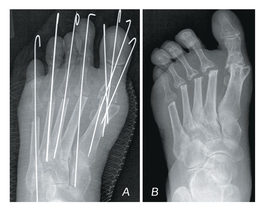 - Niki H, Hirano T, Okada H, Beppu M. Combination joint-preserving surgery for forefoot deformity in patients with rheumatoid arthritis. J Bone Joint Surg Br. 2010;92:380-386. doi: 10.1302/0301-620X.92B3.23186