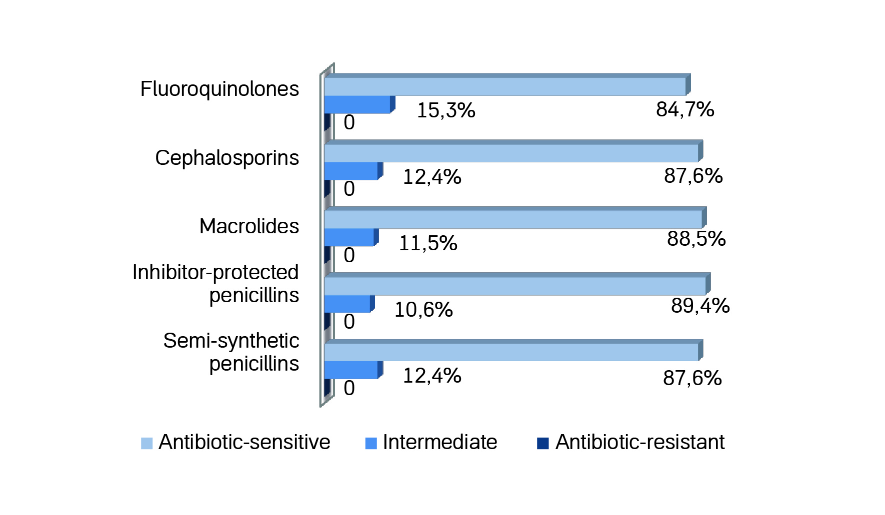 Cephalosporins showed a level of inefficiency comparable with inhibitor-protected penicillins (14.6%). The limit to their use is related with the prevalence of strains producing extended spectrum β-lactamases (ESBL) [14]. At the same time, cephalosporins of third generation remain medications of choice in exacerbated infections since they retain their activity against most strains of streptococci.