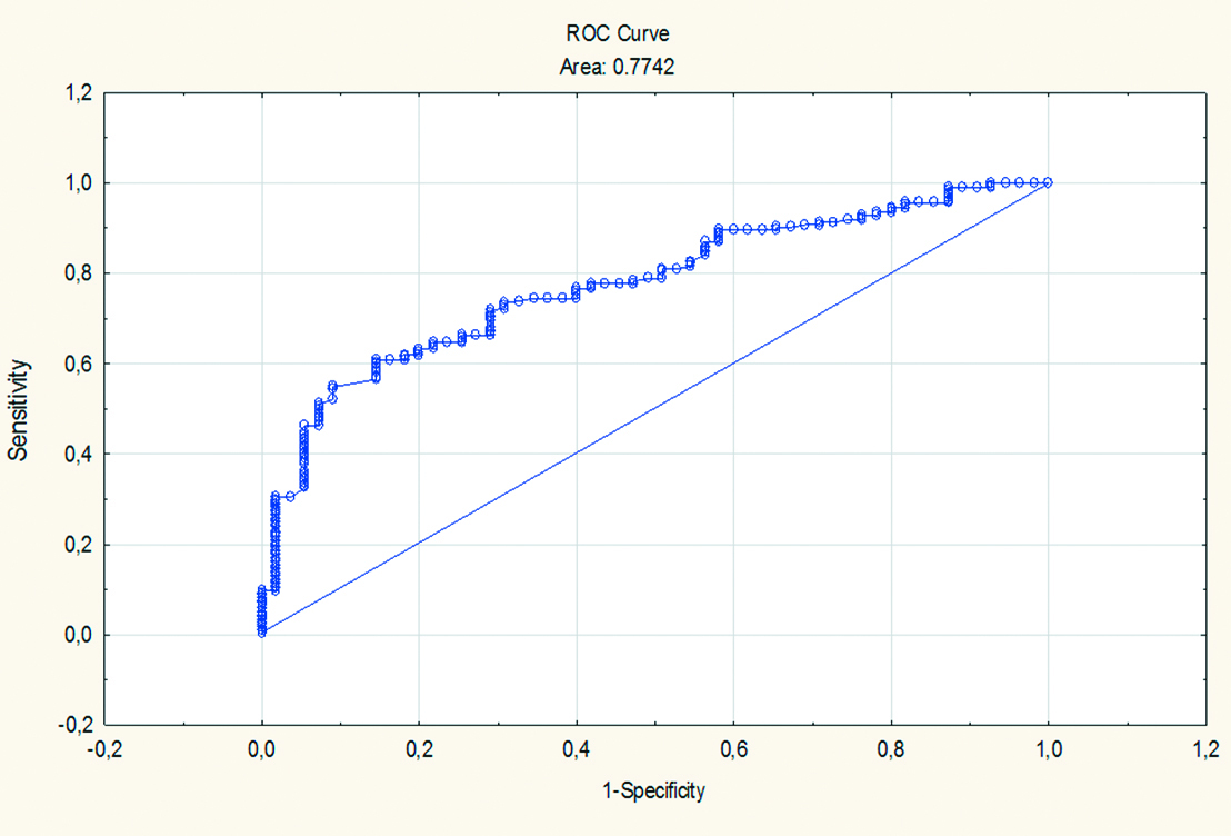 Table 1. Main results of the analysis of binary logistic regression of the prognosis of the development of unfavorable ACS