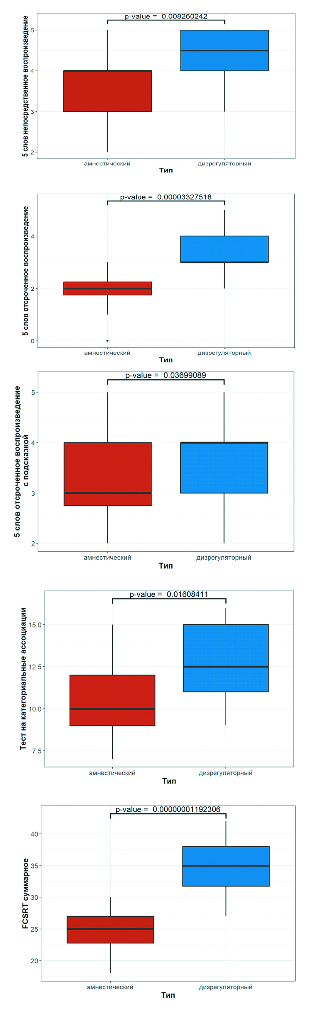 Тест | Дизрегуляторный тип | Амнестический тип | ||