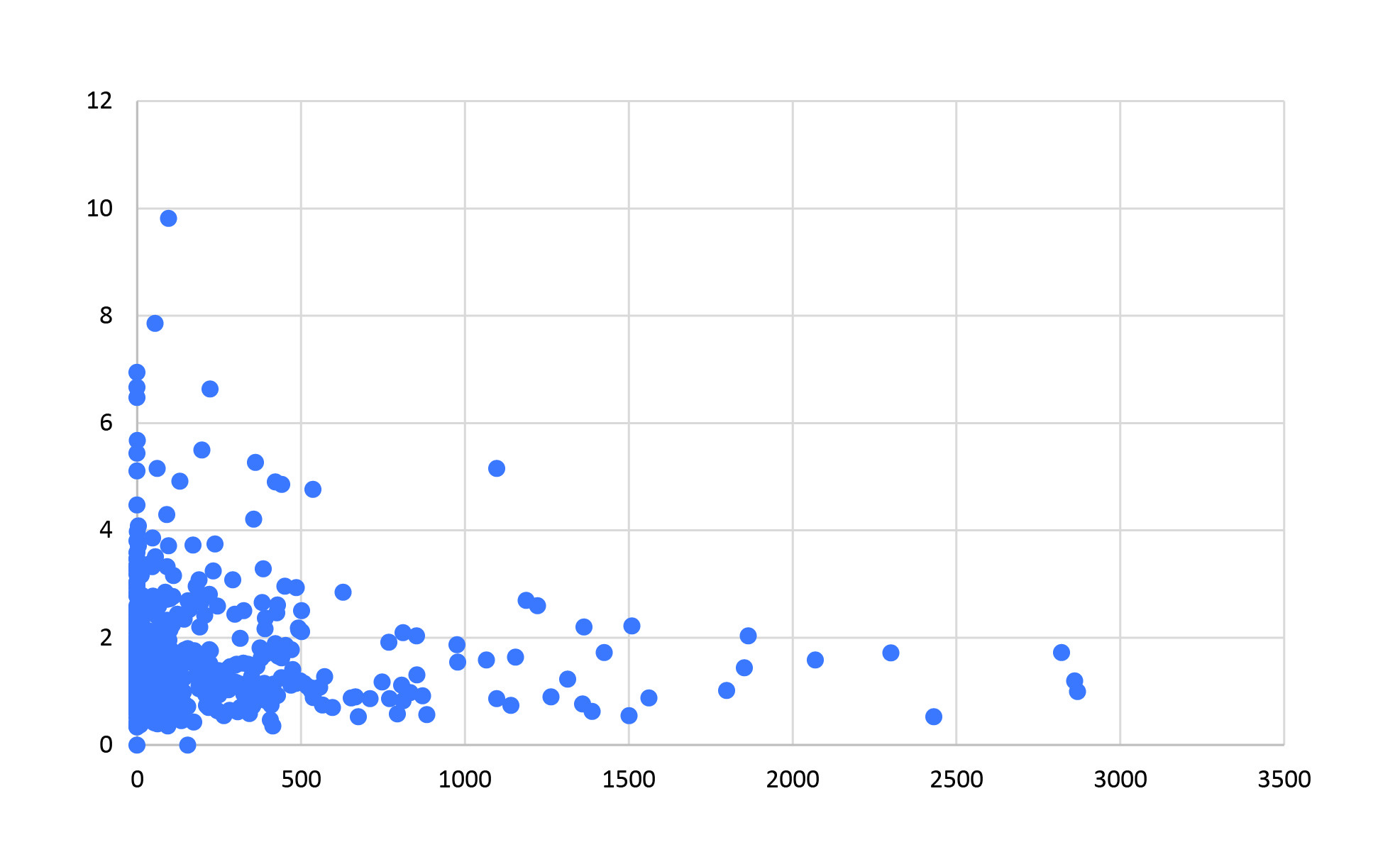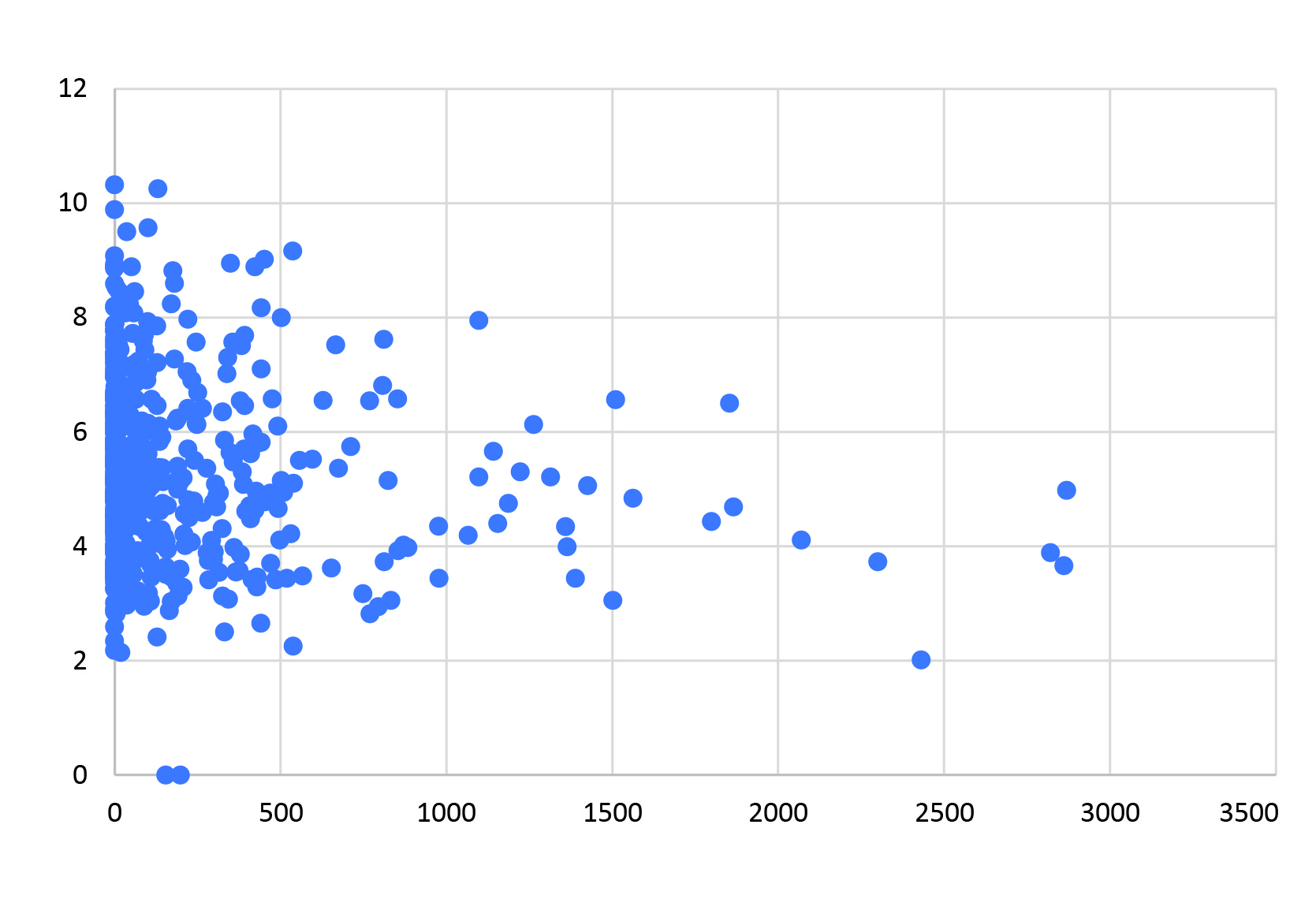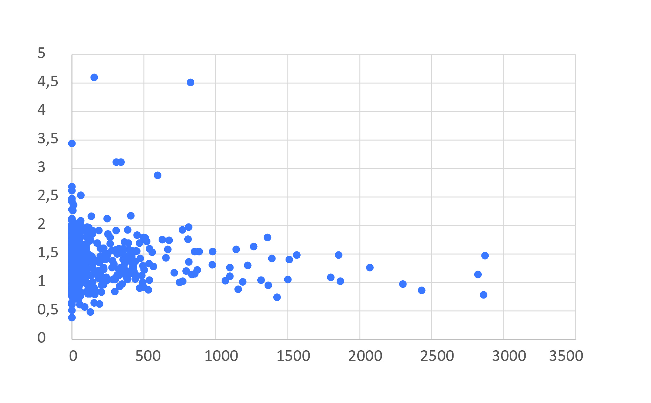 Представленный на рисунке 3 график иллюстрирует положительную корреляционную связь между уровнем ОХС и значением ИКК. На графике изображено облако точек, которое демонстрирует восходящую тенденцию. Это означает, что с ростом уровня общего холестерина в крови значения ИКК также имеют тенденцию к увеличению. График визуализирует важный патофизиологический процесс: высокий уровень холестерина в крови способствует развитию и прогрессированию атеросклероза, ключевым проявлением которого является кальцификация коронарных артерий.