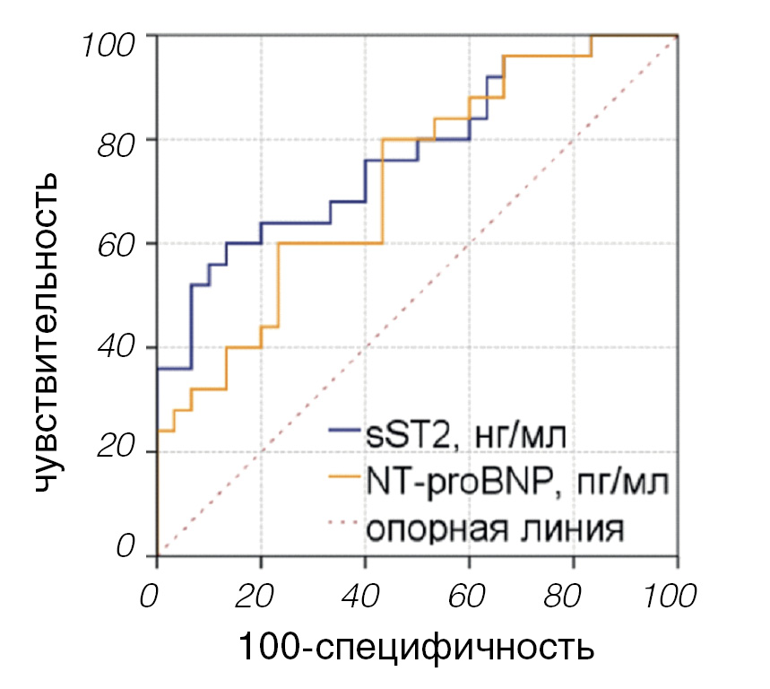 Рисунок 2. ROC-кривые для sST2 и NT-proBNP.