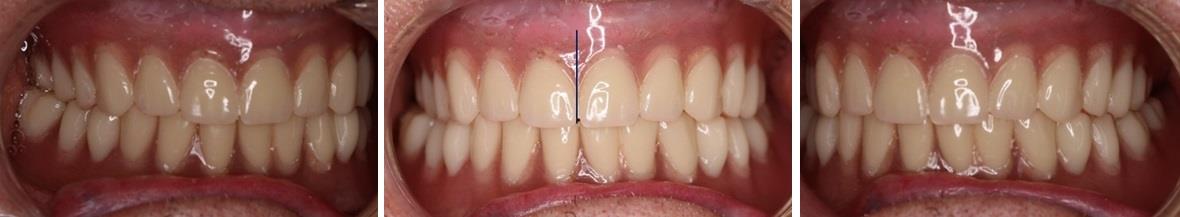 С учетом рекомендаций специалистов при постановки искусственных зубов ориентировались на среднюю линию альвеолярного гребня, что в последующем обеспечивало равное распределение жевательной нагрузки на кость.