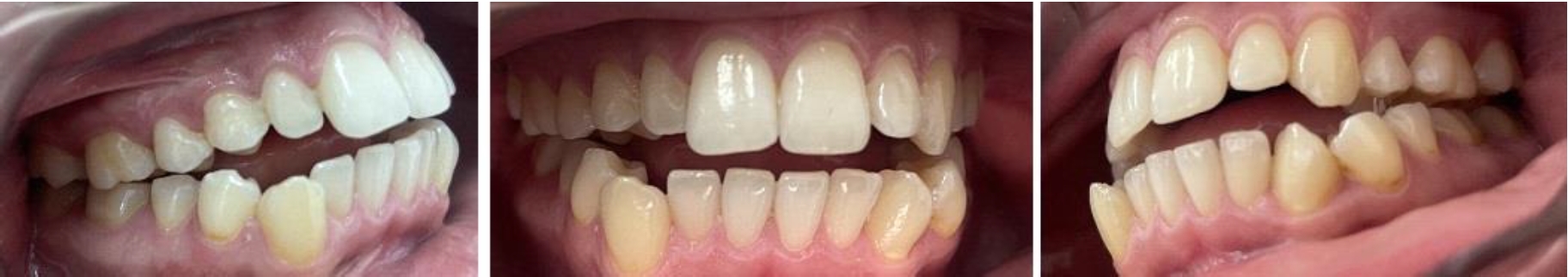 Рис. 4. Лицевые признаки и состояние окклюзионного статуса на этапе предхирургической ортодонтической реабилитации