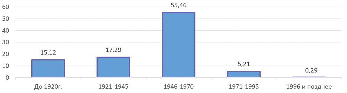 Рис. 1. Структура аварийного жилищного фонда (по годам постройки) в г. Самаре [2]